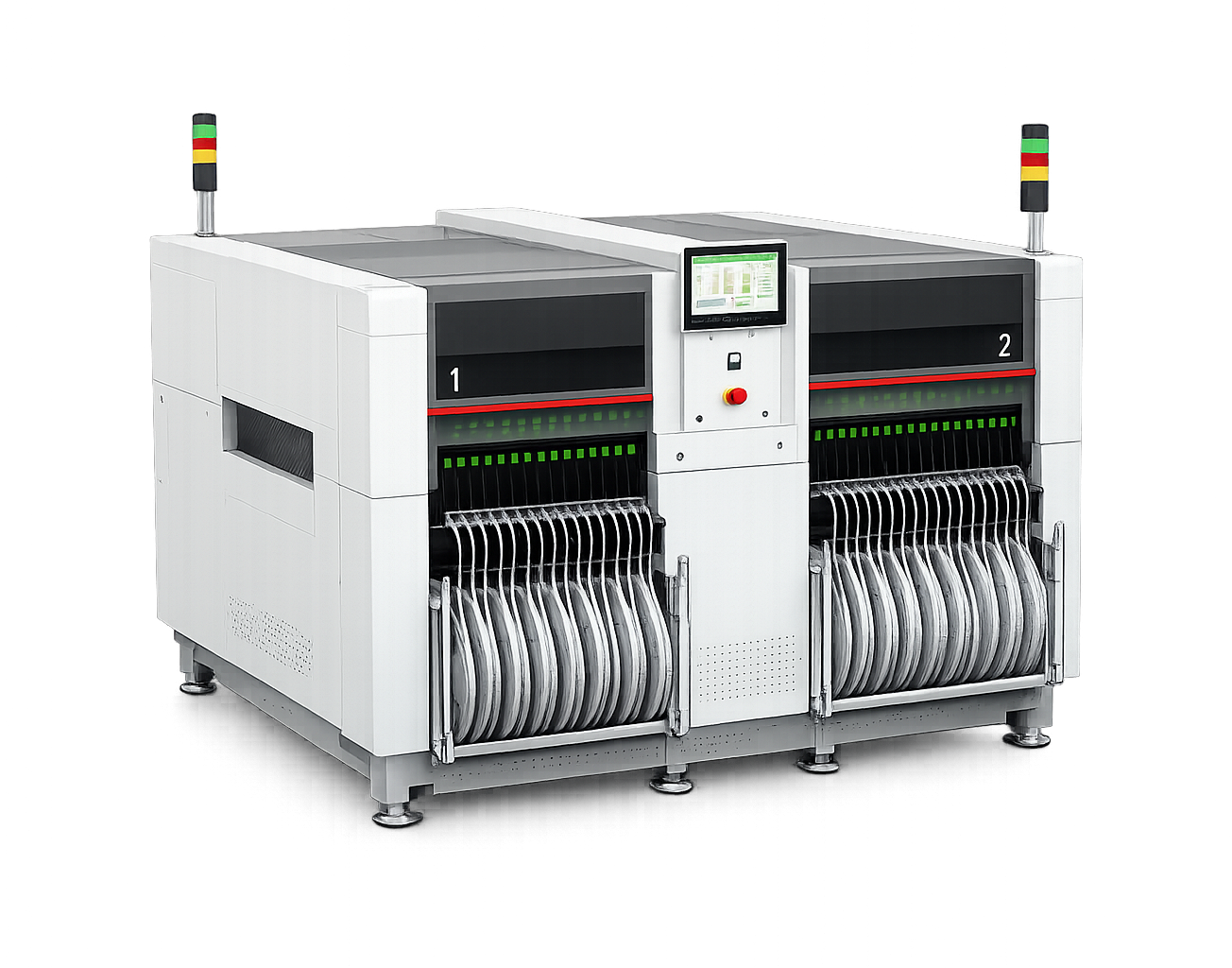 Мы поставляем и настраиваем оборудование для перестройки склада под современные процессы SMT-производства. Решение включает адресное хранение, световую индикацию для быстрого размещения и поиска, интеграцию с системами складского учета.